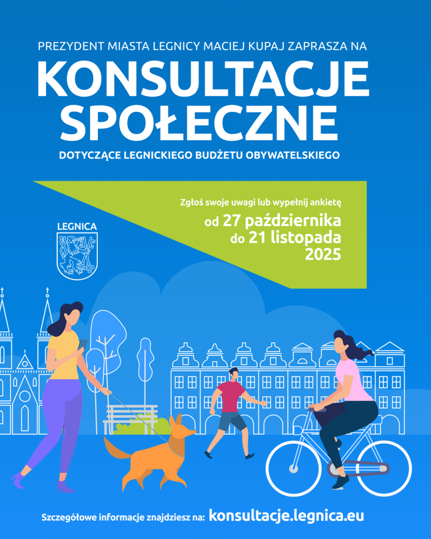 Prezydent Miasta Legnicy Maciej Kupaj zaprasza mieszkańców na konsultacje społeczne w sprawie Legnickiego Budżetu Obywatelskiego.